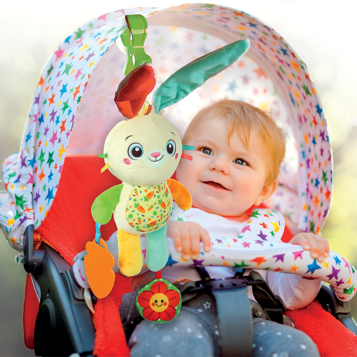 Baby Clementoni Plush Bunny Stroller Toy with Clip
