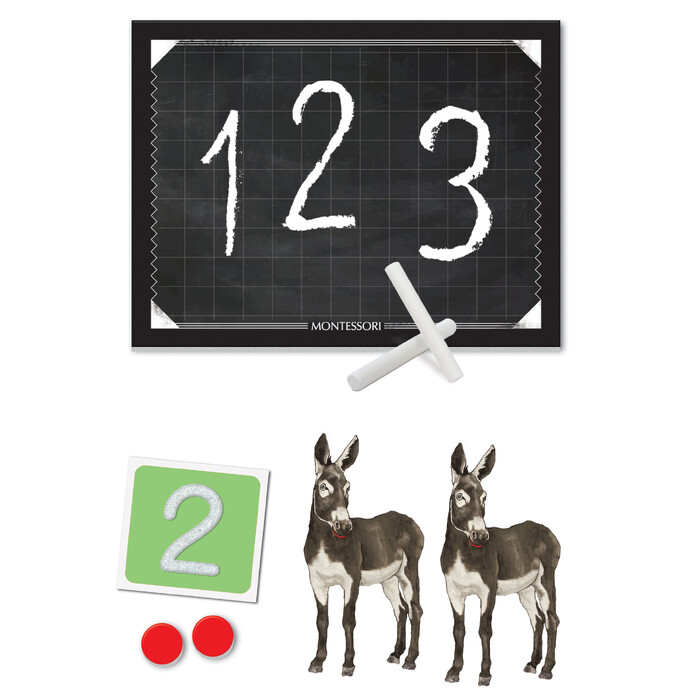 Γράψε, σβήσε, ξαναγράψε. η μάθηση είναι πάντα ένα καινούργιο παιχνίδι! Ένα σετ με 10 μαυροπίνακες και 10 κάρτες με λέξεις που σχετίζονται με τις εικόνες. Χάρη στις κιμωλίες και τη γόμα, το παιδί μπορεί να παίξει ξανά και ξανά!