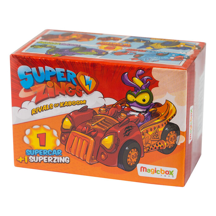 Για να κινούνται γρήγορα μέσα στην πόλη Kaboom, τα Superzings οδηγούν.τι άλλο; Supercars! Κάθε υπερ-αυτοκίνητο έχει και τη δική του υπερδύναμη. To PowerFlash έχει απίστευτη δύναμη, το LifhtingWings φαίνεται σα να πετάει, το TurboStorm μοιάζει σαν να περνάει καταιγίδα, ενώ το MonstrerJumbo είναι απλά ασταμάτητο! Καθετί κρύβει μέσα του μια υπερδύναμη. Οτιδήποτε μπορεί να γίνει Superzing! Σύλλεξε και τα 8 διαφορετικά Υπερ-Αυτοκίνητα και σάρωσε την Kaboom! Σε κάθε συσκευασία θα βρεις 1 φιγούρα Superzings, 1 Υπερ-αυτοκίνητο κι 1 φυλλάδιο συλλέκτη.
